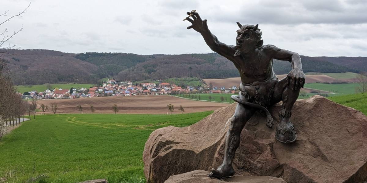 Zurück in Gerbershausen wartet die nächste Rast am Spielplatz auf Sie und die Kinder. Im letzten Abschnitt der Rundwanderung gibt es einen Halt am Rast- und Spielplatz Rothenbach mit Bronzeteufel. Ein tolles Fotomotiv!