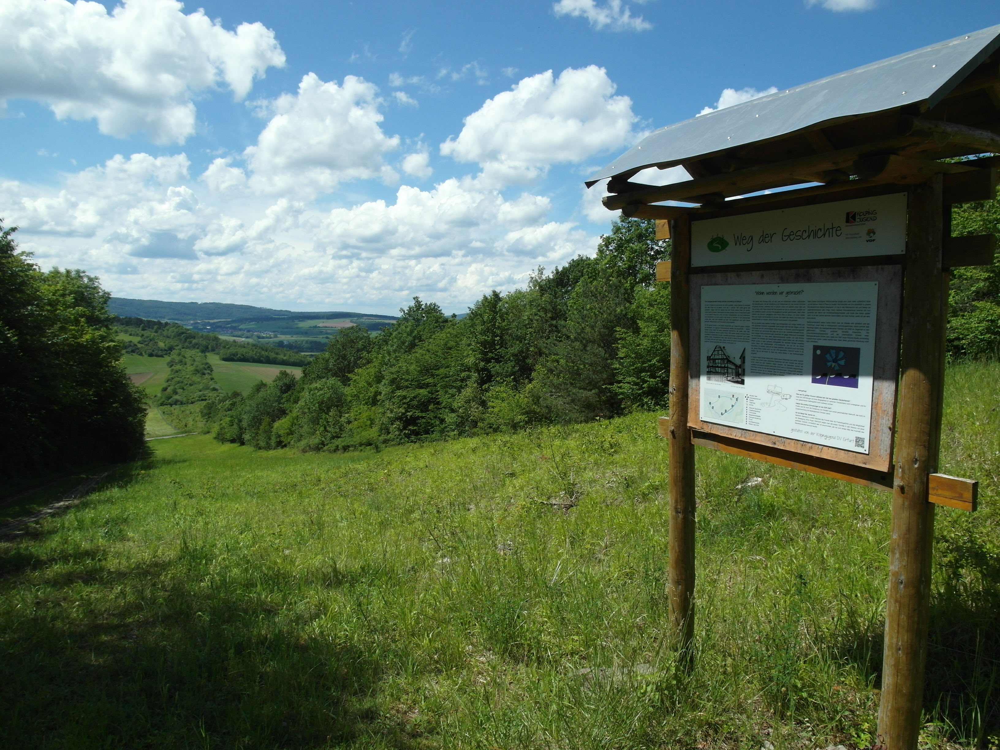 Der „Weg der Geschichte“ ist ein Rundwanderweg gegen das Vergessen. Auf mehreren Tafeln werden persönliche Geschichten aus der DDR-Zeit dargestellt, die in der Nähe der jeweiligen Schauplätze aufgestellt sind. Durch die Erzählungen aus dem Lebensalltag wird deutlich, was es für die Menschen bedeutet hat in der DDR und noch dazu im „500 Meter Streifen“ zu wohnen. Die Idee zu diesem Projekt entstand zur bundesweiten „72-Stunden-Sozialaktion” im Juni 2013. Dabei wurde der „Weg der Geschichte“ von der Kolpingjugend in Erfurt gestaltet. Sie befragten Zeitzeugen zu ihren Erlebnissen während der deutschen Teilung. Unter ihnen waren Menschen aus Ost und West, DDR-Bürger, die geflohen sind, sowie ein Grenzsoldat.